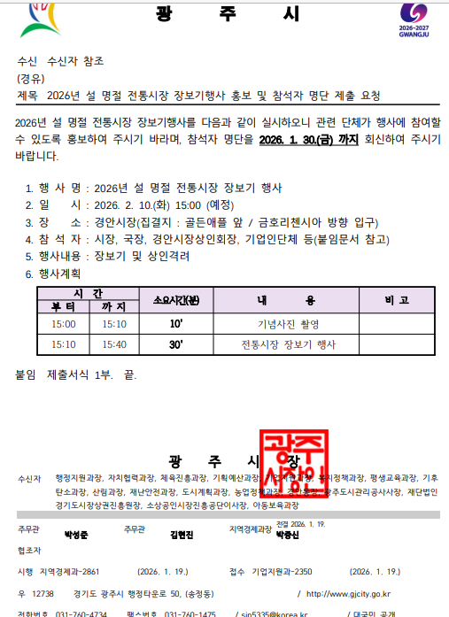 관내제품(장터)팔아주기 행사 참가 신청하시는 기업 메일로 보내주시기 바랍니다.